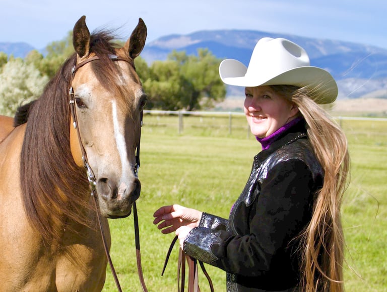 When Eric and I were shooting author photos, I tried the classic Montana cowgirl look, posing with my little buckskin half-Arab, Sassy. It didn't work out, as you can see. We tried gamely, but the hat shaded my face and the wind made Sassy's forelock look like I gave her a Mohawk! Ultimately, I ditched the hat, grabbed my Fire Horse, and Indy won the photo contest!