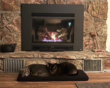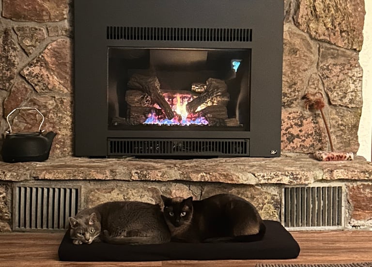 Finally, one more picture of Sherlock and Watson, side by side by the fireplace...for a few seconds until they realized I was taking their photo!